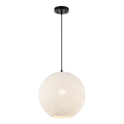 Lacey Bohemian Minimalist Iron/Rope Woven Globe LED Pendant White/Black - JONATHAN Y
