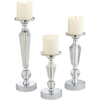 Dahlia Studios Alix Chrome and Crystal Pillar Candle Holders Set of 3