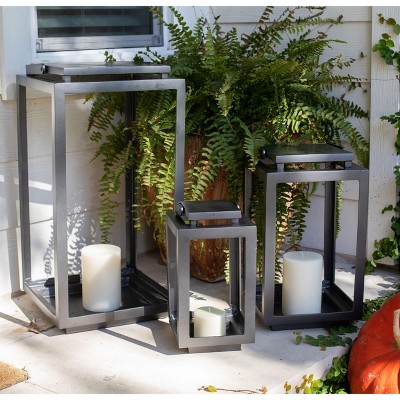 BIRDROCK HOME Decorative Lanterns – Set of 3 Large Metal Candle Holders for Indoor & Outdoor Use – Rustic Farmhouse Porch Decor in Gunmetal