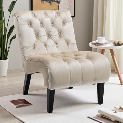 Velvet Armless Accent Chair with Button Tufted Upholstery