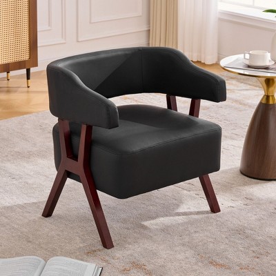 TYBOATLE Upholstered Mid Century Accent Chair with Faux Leather Wrapped Seat & Solid Wood Frame