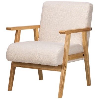 Vatros Modern Boucle Lounge Chair with Solid Wood Frame and Rolled Backrest
