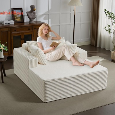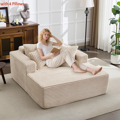 GDFStudio Charlotter 78.8"W Modern Corduroy Upholstered Compressed Double Chaise Lounge