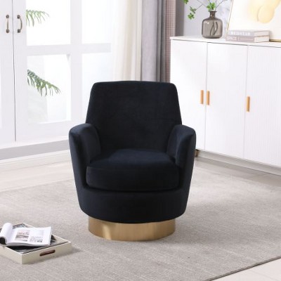 KINWELL 29" Wide Tufted PU Leather Swivel Barrel Chair