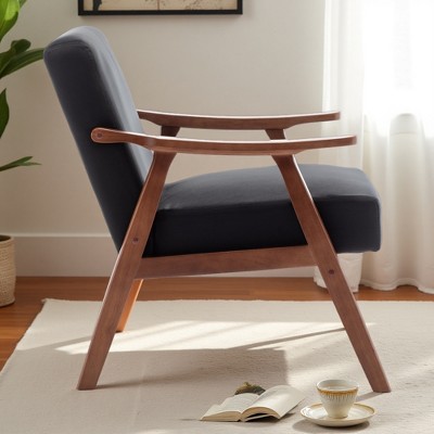 26" Mid-Century Wingback Chair with Thick Backrest and Wood Frame