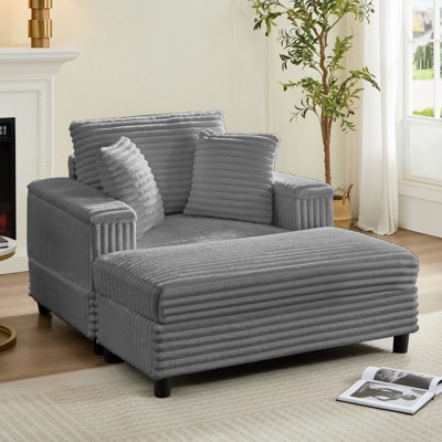 Dexmalle Oversized Corduroy Chaise Lounge Sofa Chair,Indoor,Gray