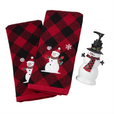 2pk Woodcut Snowman Hand Towel Set Off White - SKL Home