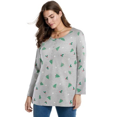 Woman Within Perfect Printed Long-Sleeve Henley Tee