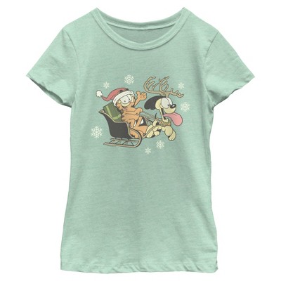 Girls Garfield Christmas Odie Sleigh T Shirt