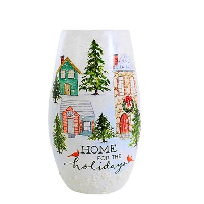 Stony Creek 11.75 In Vintage Postcard Large Vase Christmas Lighted Glass Accent , Christmas Decor Electric Pre-Lit Christmas (1PC)