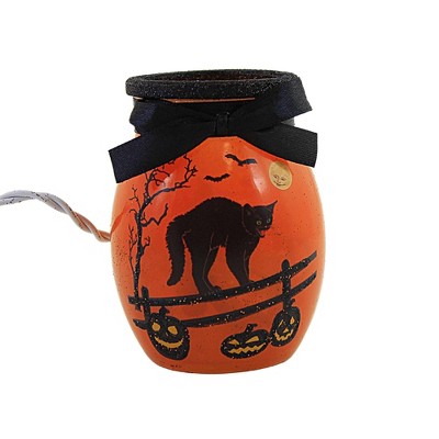 Stony Creek 4.0 Inch Halloween Pre-Lit Small Jar Halloween Lighted Glass Accent , Halloween Decor Cat Haunted House (1PC)