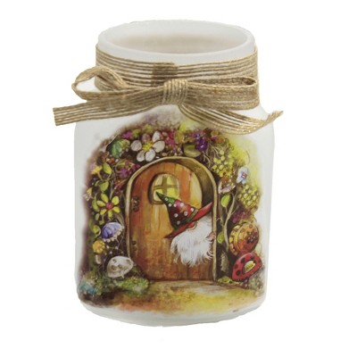 Stony Creek 4.5 Inch Garden Gnome Adventure Jar Lighted Glass Accent , Pre-Lit Flowers Summer (1PC)