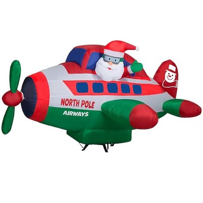 Gemmy 8-FT Wide Animated Santa Flying in North Pole Airplane Christmas Inflatable