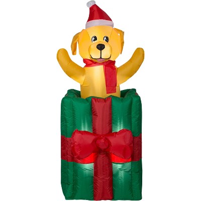 Gemmy Animated Puppy in Christmas Gift Box, 5 ft Tall, Green