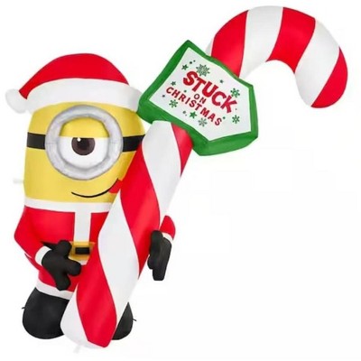 Gemmy 5Ft. Minion Stuart with "Stuck on Christmas" Candy Cane Holiday Inflatable