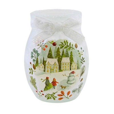Stony Creek 4.0 Inch Vintage Postcard Small Jar Christmas Lighted Glass Accent , Christmas Decor Pre-Lit Electric Christmas (1PC)
