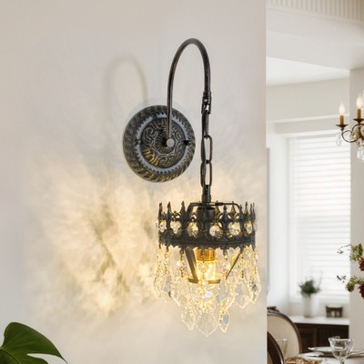 Artloge American Vintage Hardwired Crystal Wall Sconce Light Fixture w/ Clear Crystals