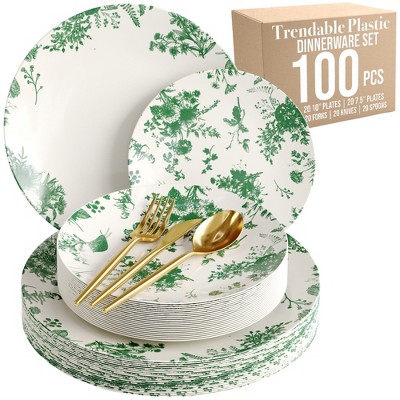 Crown Display 350 Piece Color Disposable Plastic Dinnerware party set- Serves 50