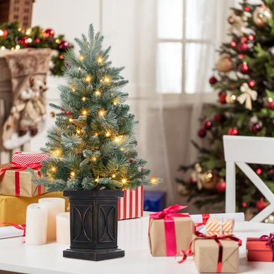 FIONECA Pre-lit Flocked Artificial Christmas Tree with Foldable Stand