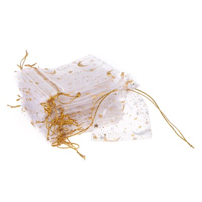 Unique Bargains Moon Star Printed Drawstring Mini Gift Candy Christmas Organza Bags 100 Pcs