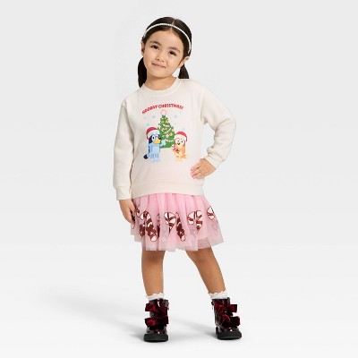 Toddler Girls' 2pk Bluey Christmas Fleece Sweatshirt and Skirt Set - Pink/Ivory