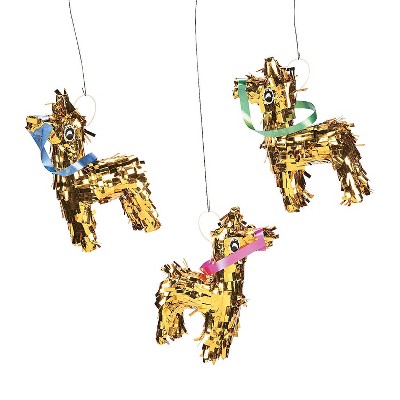 Mini Gold Fringe Donkey Piñata Decorations - 3 Pc.