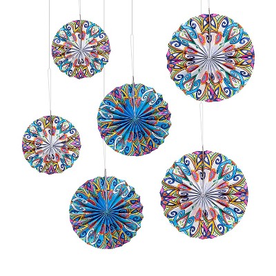 Fun Express 8" – 12" Colorful Fiesta Hanging Fan Decorations - 6 Pc.