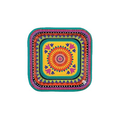 Fun Express 7" Fiesta Party Square Disposable Paper Dessert Plates - 8 Ct.