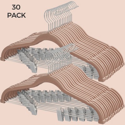 30-Pack Solid Birch Wood Hangers with Pants Bar & 360° Swivel Hooks, Space Saving Closet Organizers for Jackets Coats