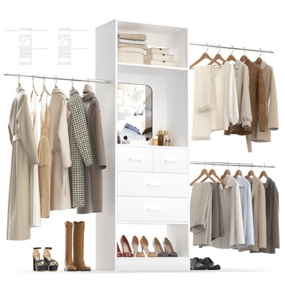 Besiost 8FT Closet Organizer System with 4 Wooden Drawers & Hanging Rods