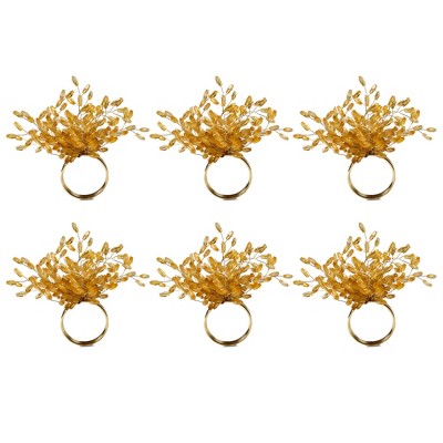 Classic Touch Set Of 6 Napkin Rings Gold Button Design