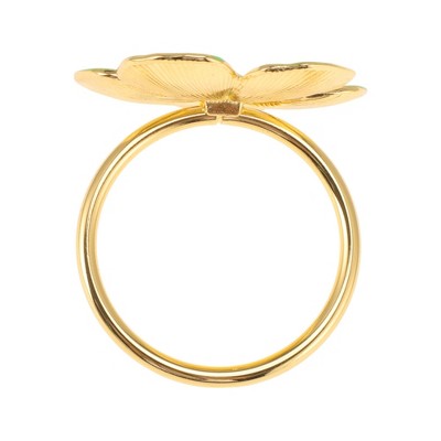 Unique Bargains Napkin Holder Rings Stainless Steel Green Gold Tone 1 Pc