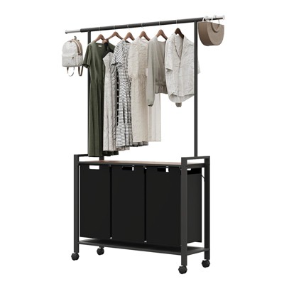 IRIS Metal Garment Rack with 2 Wooden Shelves Marble