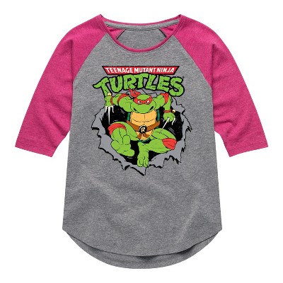 Girls' - Teenage Mutant Ninja Turtles - Raphael Breaking Through Shirt Shirt Tail Raglan Graphic T-shirt