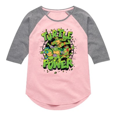 Girls' - Teenage Mutant Ninja Turtles - Turtle Power New Shirt Tail Raglan Graphic T-shirt
