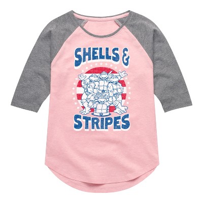 Girls' - Teenage Mutant Ninja Turtles - Shells And Stripes Shirt Tail Raglan Graphic T-shirt