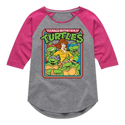 Girls' - Teenage Mutant Ninja Turtles - Retro Group April Shirt Tail Raglan Graphic T-shirt