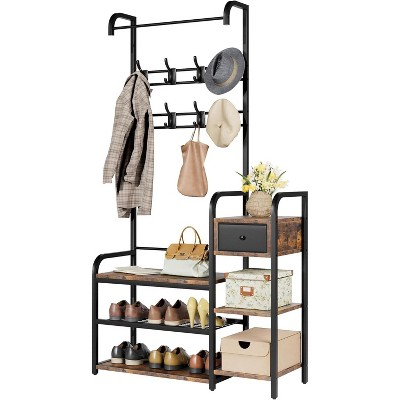 Dexmalle Industrial Hall Tree Coat Rack with Shoe Bench,Brown