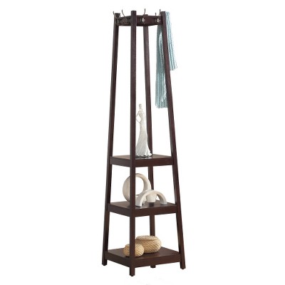 GDFStudio Parker Wood Coat Rack with 3-Tier Storage Shelves