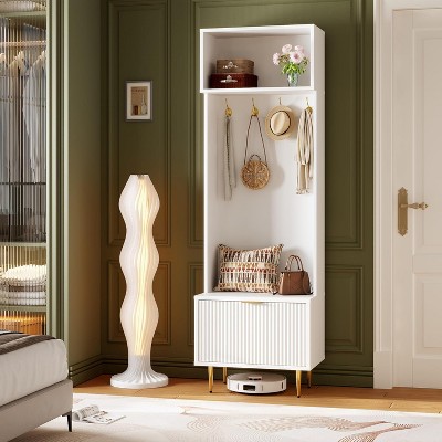 74" Hall Tree with Bench and Storage, Coat Rack with Shoe Bench