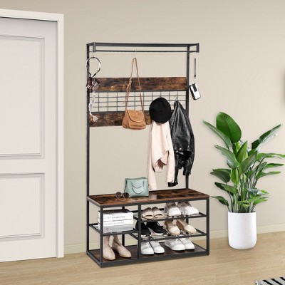 Coat racks are a great and easy way to add extra storage space in your entryway, living room or bedroom. To make room for all your scarves, hats and jackets, you need a solid and stylish coat rack. Add more comfort and convenience to your home with a hall tree. This versatile piece of furniture lets you put away your coats and essentials while giving you a seating space to slip into your shoes with ease. Valet stands are a compact storage solution for small spaces. They let you keep all your daily essentials in one place so you always know where to find your keys and wallet. If you like hats and are in need of a good way to display and store them, then hat stands have got you covered. Coat racks are not only functional but can also add some character to your space. Spruce up your entryway or office with a chic coat stand that also doubles up as an abstract sculpture. Put the corner of the room to good use with a standing coat rack or a freestanding coat rack. Take your pick from a variety of options ranging from a modern coat tree to a vintage coat rack with an umbrella stand. If you’re looking for a coat hanger stand that matches your decor, pick your favorite from industrial, modern, rustic and mid-century modern styles of coat stands. Whether you’re looking for a new coat stand or looking to upgrade an old one, at Target you are sure to find the perfect one to suit your need.