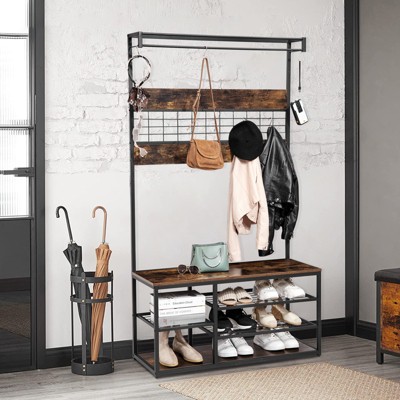 Coat racks are a great and easy way to add extra storage space in your entryway, living room or bedroom. To make room for all your scarves, hats and jackets, you need a solid and stylish coat rack. Add more comfort and convenience to your home with a hall tree. This versatile piece of furniture lets you put away your coats and essentials while giving you a seating space to slip into your shoes with ease. Valet stands are a compact storage solution for small spaces. They let you keep all your daily essentials in one place so you always know where to find your keys and wallet. If you like hats and are in need of a good way to display and store them, then hat stands have got you covered. Coat racks are not only functional but can also add some character to your space. Spruce up your entryway or office with a chic coat stand that also doubles up as an abstract sculpture. Put the corner of the room to good use with a standing coat rack or a freestanding coat rack. Take your pick from a variety of options ranging from a modern coat tree to a vintage coat rack with an umbrella stand. If you’re looking for a coat hanger stand that matches your decor, pick your favorite from industrial, modern, rustic and mid-century modern styles of coat stands. Whether you’re looking for a new coat stand or looking to upgrade an old one, at Target you are sure to find the perfect one to suit your need.