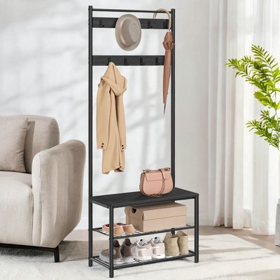 Coat racks are a great and easy way to add extra storage space in your entryway, living room or bedroom. To make room for all your scarves, hats and jackets, you need a solid and stylish coat rack. Add more comfort and convenience to your home with a hall tree. This versatile piece of furniture lets you put away your coats and essentials while giving you a seating space to slip into your shoes with ease. Valet stands are a compact storage solution for small spaces. They let you keep all your daily essentials in one place so you always know where to find your keys and wallet. If you like hats and are in need of a good way to display and store them, then hat stands have got you covered. Coat racks are not only functional but can also add some character to your space. Spruce up your entryway or office with a chic coat stand that also doubles up as an abstract sculpture. Put the corner of the room to good use with a standing coat rack or a freestanding coat rack. Take your pick from a variety of options ranging from a modern coat tree to a vintage coat rack with an umbrella stand. If you’re looking for a coat hanger stand that matches your decor, pick your favorite from industrial, modern, rustic and mid-century modern styles of coat stands. Whether you’re looking for a new coat stand or looking to upgrade an old one, at Target you are sure to find the perfect one to suit your need.