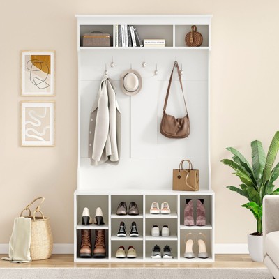 Dexmalle Industrial Hall Tree Coat Rack with Shoe Bench,Brown