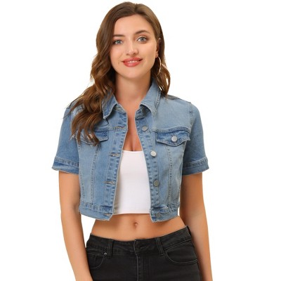 INSPIRE CHIC Women's Casual Short Sleeves Crop Denim Jacket