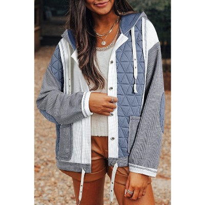 Jungle Green Quilted Textured Patchwork Loose Fit Hooded Jacket
