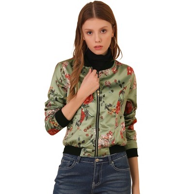 INSPIRE CHIC Women's Sequin Sparkle Front Zipper Cropped Bomber Jacket