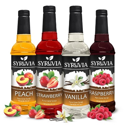 Syruvia Coffee Flavors Variety Pack: Raspberry, Peach, Vanilla & Strawberry 25.4 fl oz Syrup