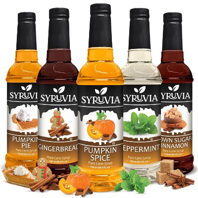 Syruvia Variety Pack - Pumpkin Spice, Pumpkin Pie, Brown Sugar Cinnamon, Gingerbread & Peppermint Syrup 25.4 Fl oz (5-Pack)