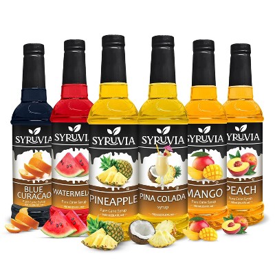 Syruvia Coffee Flavors Variety Pack: Pineapple, Watermelon, Mango, Blue Curacao, Peach & Pina Colada 25.4 fl oz Syrup